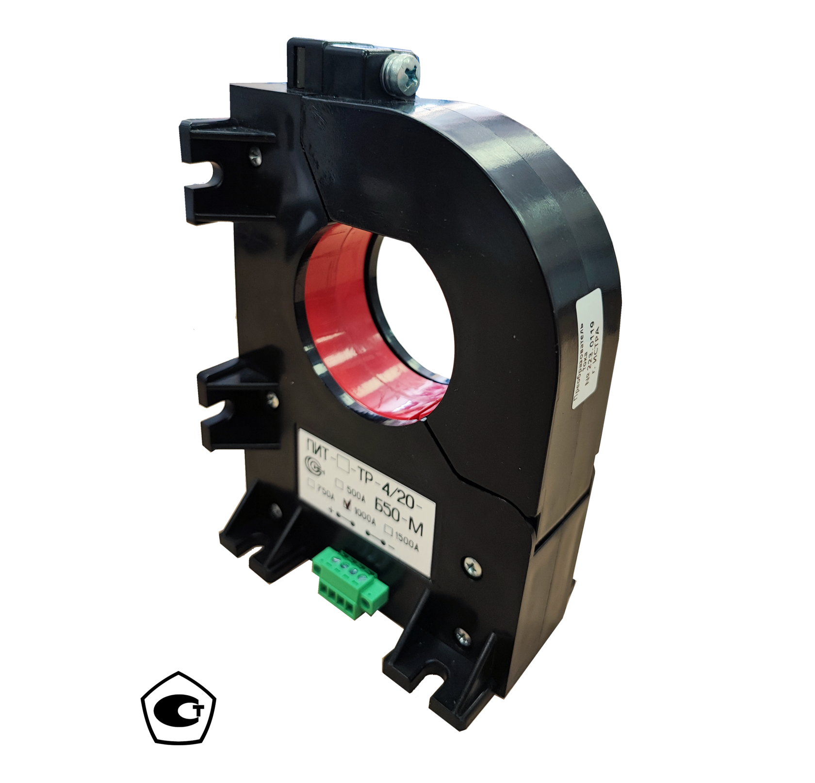 Разъемные измерительные преобразователи тока ПИТ-_-ТР-4/20-Б50-М предназначены для оперативного включения в процесс производства без его остановки. Монтируются на токовую шину и позволяют измерять переменный ток в широких пределах от 500 А до 1000 А. Преобразователь состоит из разъемного корпуса, в котором закреплены 2 половинки магнитопровода с обмоткой и электронная схема обработки сигнала.