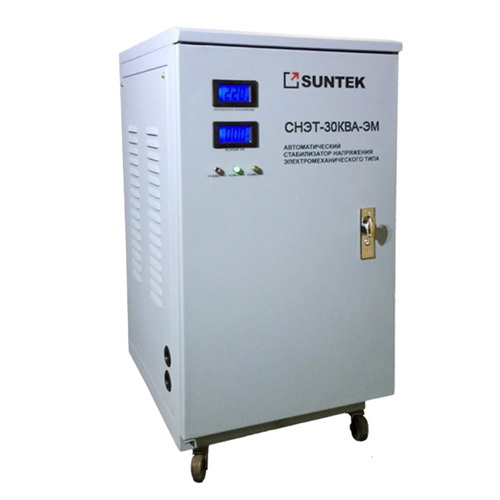 Стабилизатор SUNTEK ЭМ 30000 ВА характеризуется широким диапазоном входных напряжений, плавным, без скачков изменением выходного напряжения, многоступенчатой системой защиты, разработанной с учетом особенностей российских электросетей.
