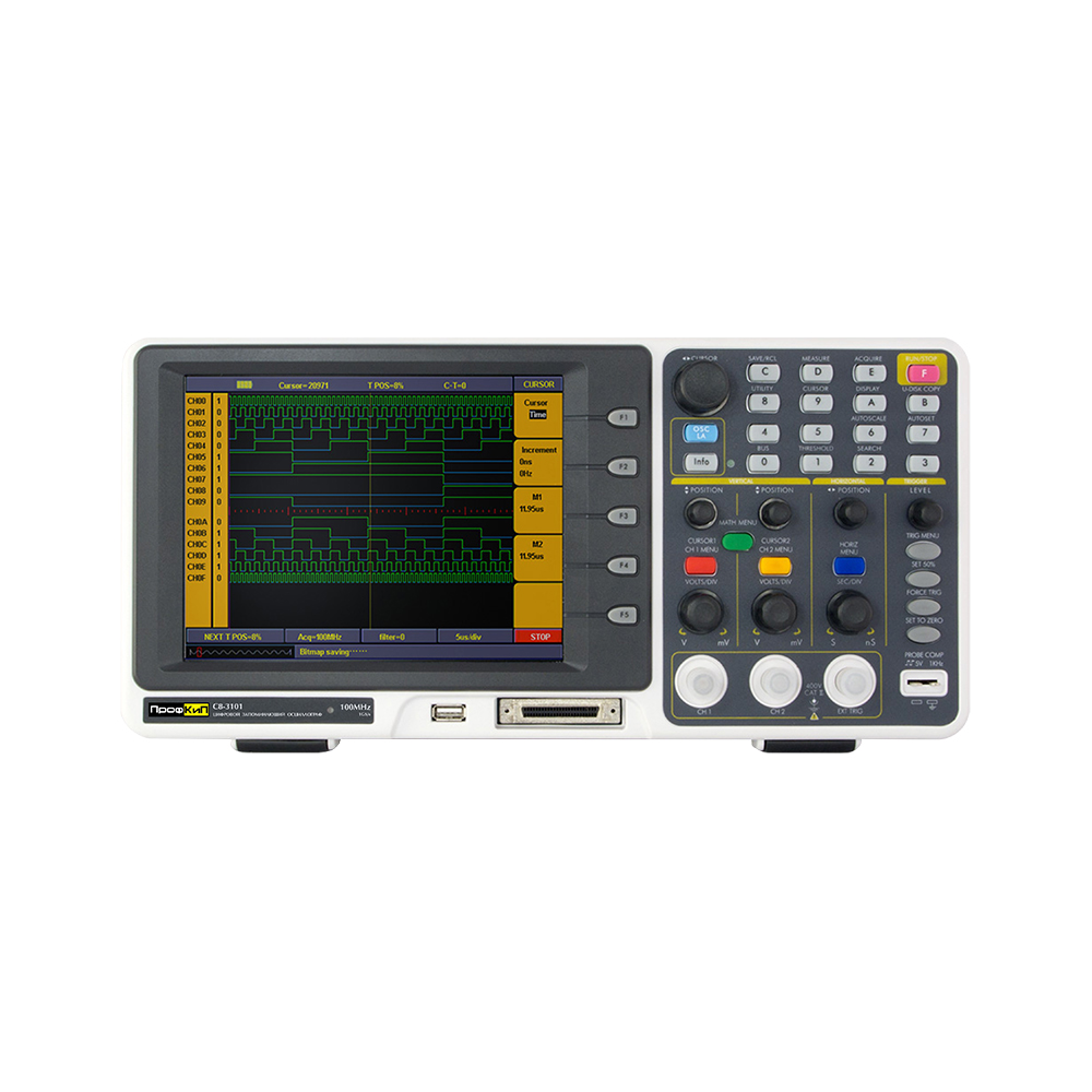 ПрофКиП С8-3102 – это цифровой двухканальный осциллограф смешанных сигналов, сочетающий в себе функциональность цифрового запоминающего осциллографа и возможности 16-канального логического анализатора. Это дает широкие возможности для наблюдения как аналоговых сигналов до 100 МГц с частотой дискретизации в реальном времени 2 Гвыб /с, так и цифровых сигналов с тактовой частотой до 100 МГц.